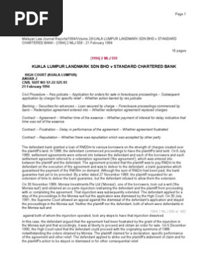 Kuala Lumpur Landmark Sdn Bhd V Standard Chartered Bank Lawsuit Guarantee