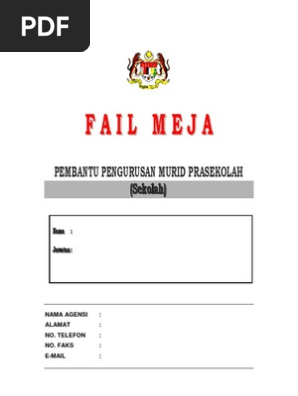 Fail Meja Jawatan Pembantupengurusanmurid Unit Prasekolah Bahagian