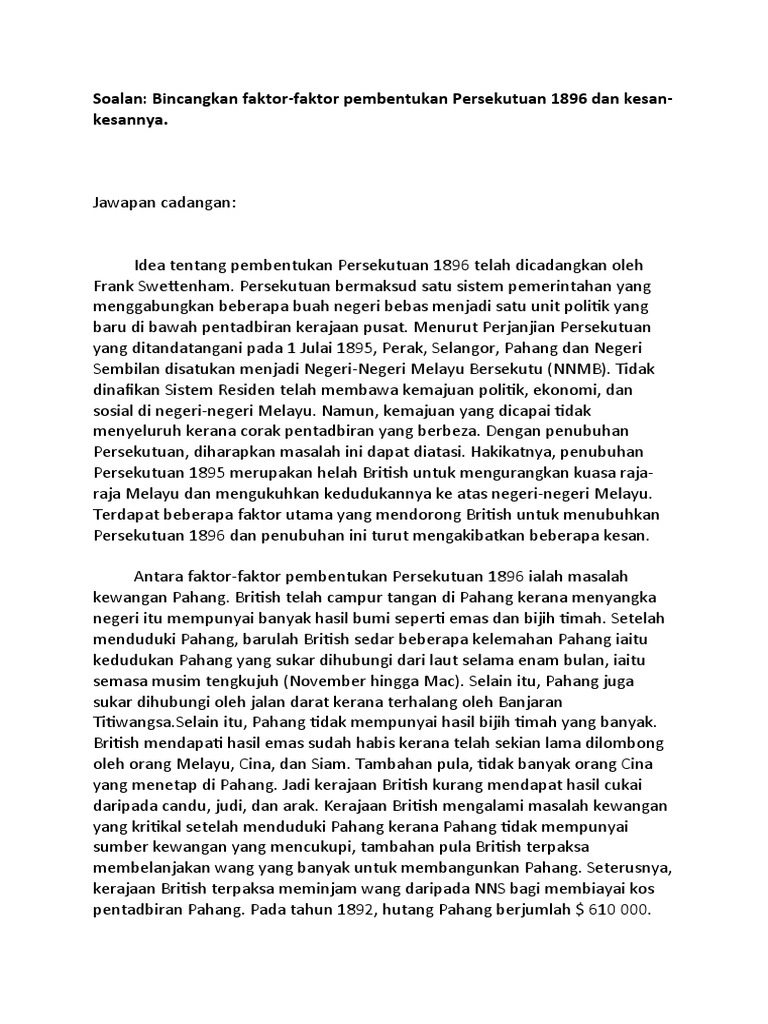 Soalan Bincangkan Faktor Faktor Pembentukan Persekutuan 1896 Dan Kesan Kesannya Zikri Husaini