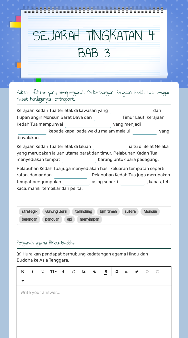 Sejarah Tingkatan 4 Bab 3 Interactive Worksheet By Roseni Binti Mohd Nusi Moe Wizer Me