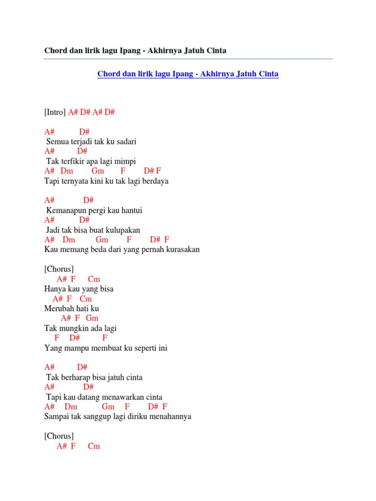 Chord Dan Lirik Lagu Ipang Akhirnya Jatuh Cinta