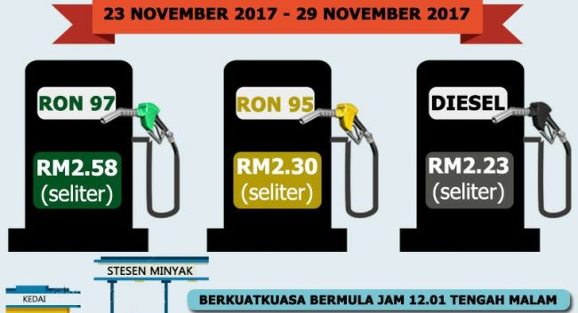 Harga Minyak Petrol Dan Diesel Dari 23 Hingga 29 November 2017