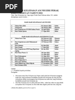 Hari Hari Kelepasan Am Bagi Negeri Perak Pusat Maklumat Rakyat Daerah Kuala Kangsar Facebook