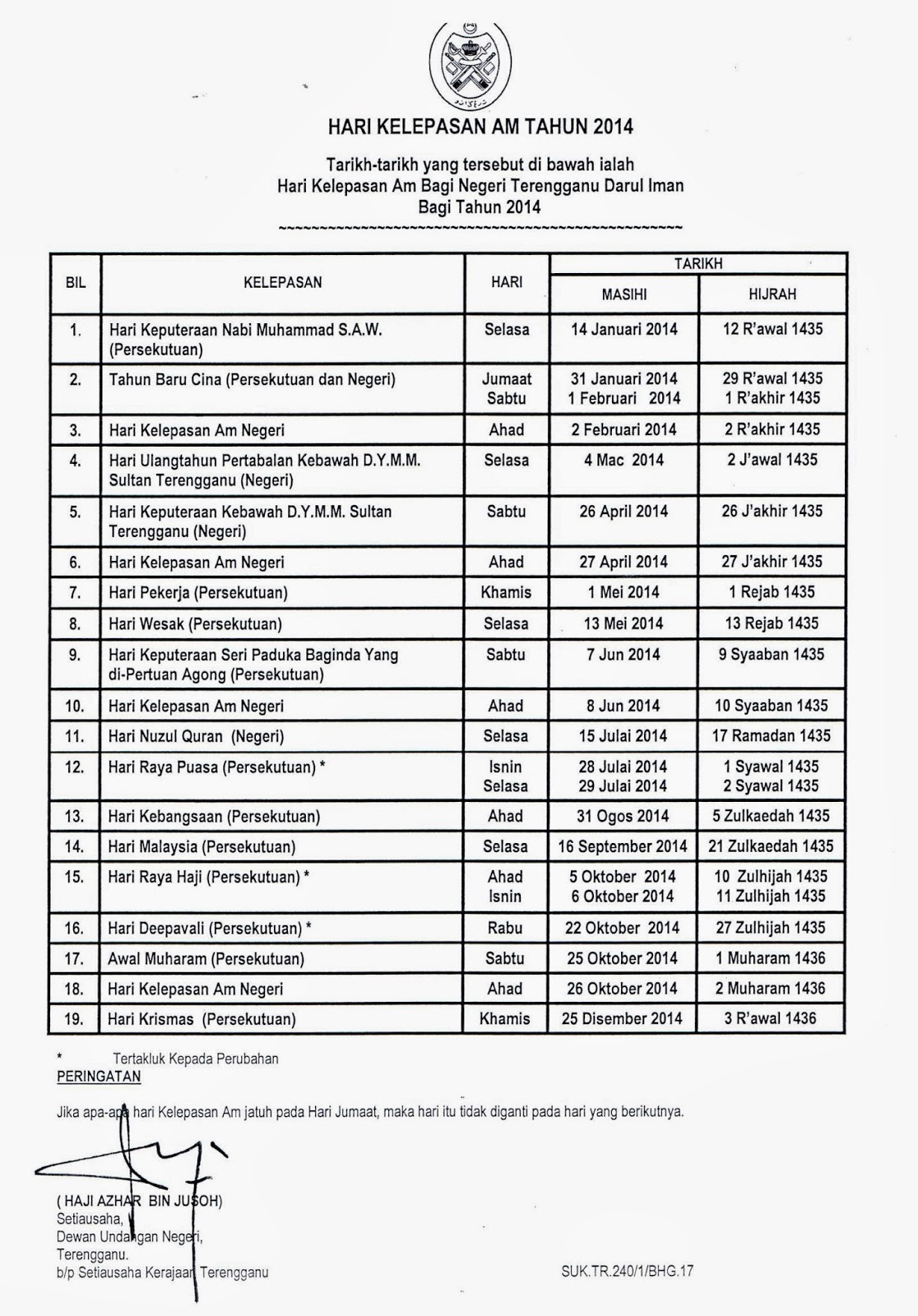 Hari Kelepasan Am 2018 Negeri Terengganu Darul Iman Portal Rasmi Majlis Daerah Hulu Terengganu Mdht