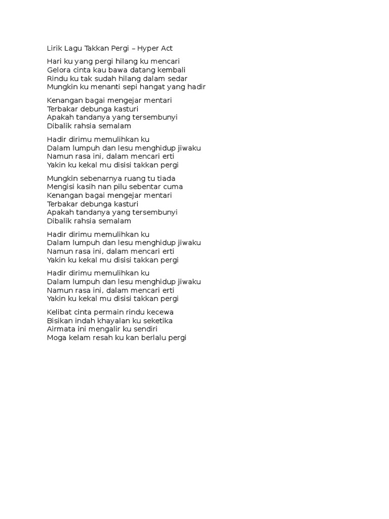 Hyper Act Takkan Pergi Lirik Koleksi Lirik Lagu Melayu Dan Inggeris