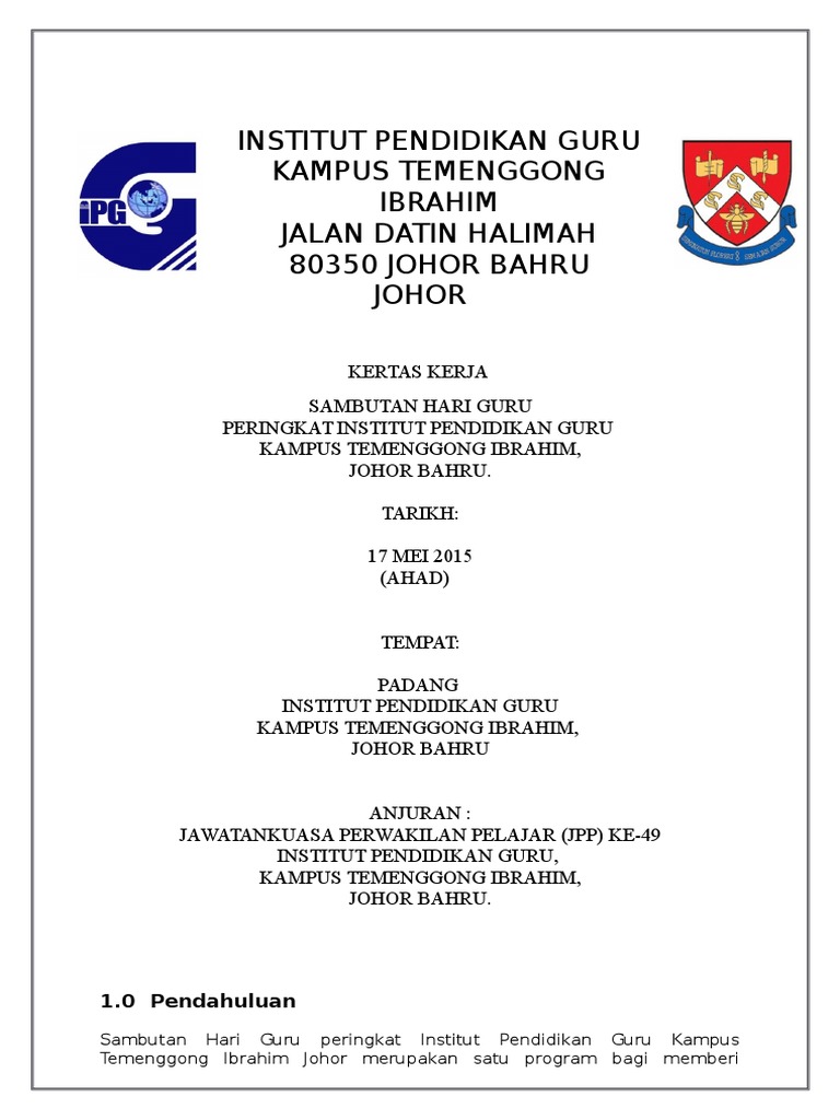 Jpp Ipg Kampus Temenggong Ibrahim Institut Pendidikan Guru Kampus Temenggong Ibrahim Jalan Datin Halimah Johor Bahru 2020
