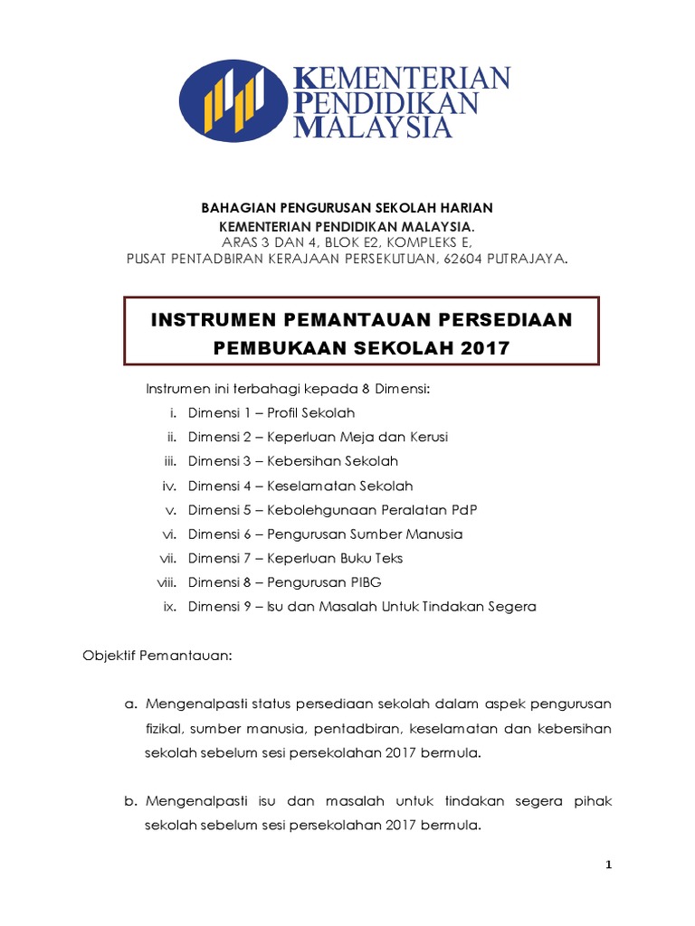 Instrumen Pemantauan Pembukaan Sekolah 2017 Pdf