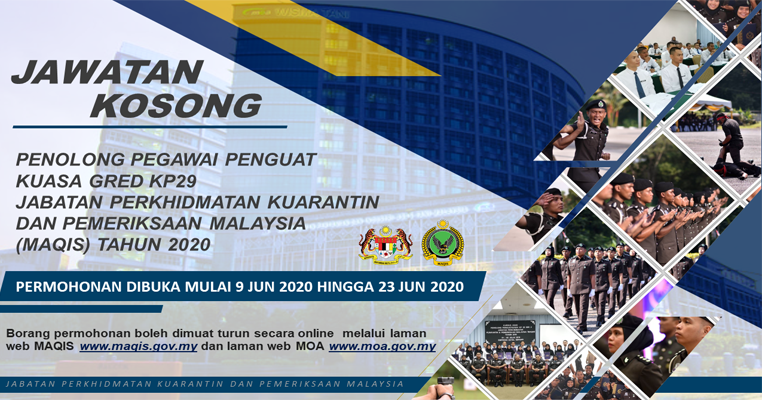 Jawatan kosong jabatan perkhidmatan kuarantin dan pemeriksaan malaysia maqis. Iklan permohonan jawatan kosong terkini di bawah merupakan maklumat kekosongan jawatan yang ditawarkan oleh majikan terlibat. Jabatan perkhidmatan kuarantin dan pemeriksaan malaysia maqis penolong penguatkuasa by hello kerjaya june 18 2020 jabatan perkhidmatan kuaranti dan peperiksaan malaysia maqis ingin mempelawa mereka yang berminat dan berkelayakan serta komited dan boleh bekerja dalam kumpulan untuk mengisi kekosongan jawatan kosong berikut.