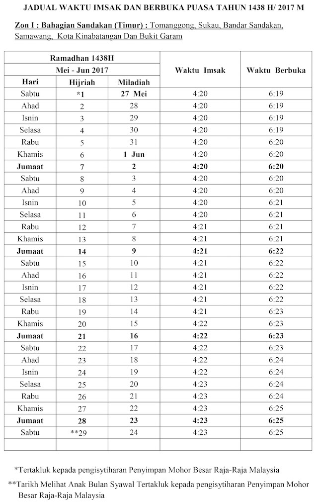 Waktu Berbuka Puasa Imsak 2017 Sabah Cute766
