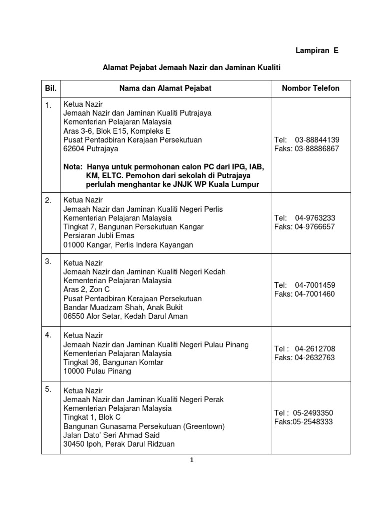 Senarai Pejabat Jemaah Nazir Dan Jaminan Kualiti Jnjk Files Jemaah Bil Alamat Jnjk Negeri Pdf Document