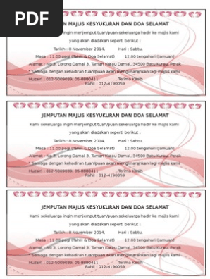 Jemputan Majlis Kesyukuran Dan Doa Selamat Doc
