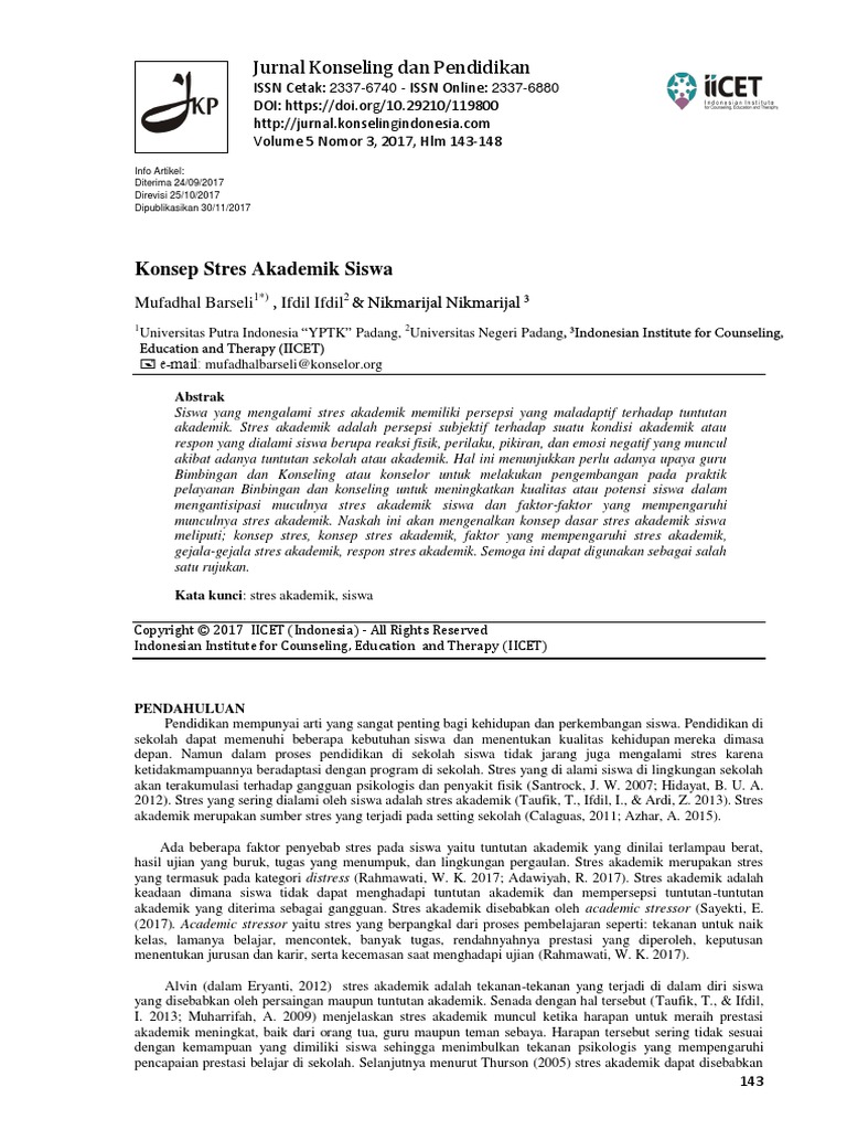 Konsep Stres Akademik Siswa Jurnal Konseling Dan Pendidikan