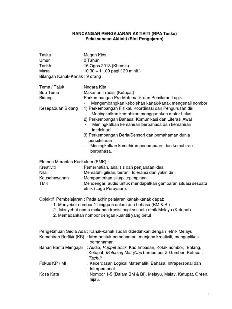 Rpa Ubi Docx Rancangan Pelaksanaan Aktiviti Rpa Kurikulum Permata Negara Tarikh Hari Masa Umur Bilangan Kanak Kanak Tema Tajuk Aktiviti Bidang Course Hero
