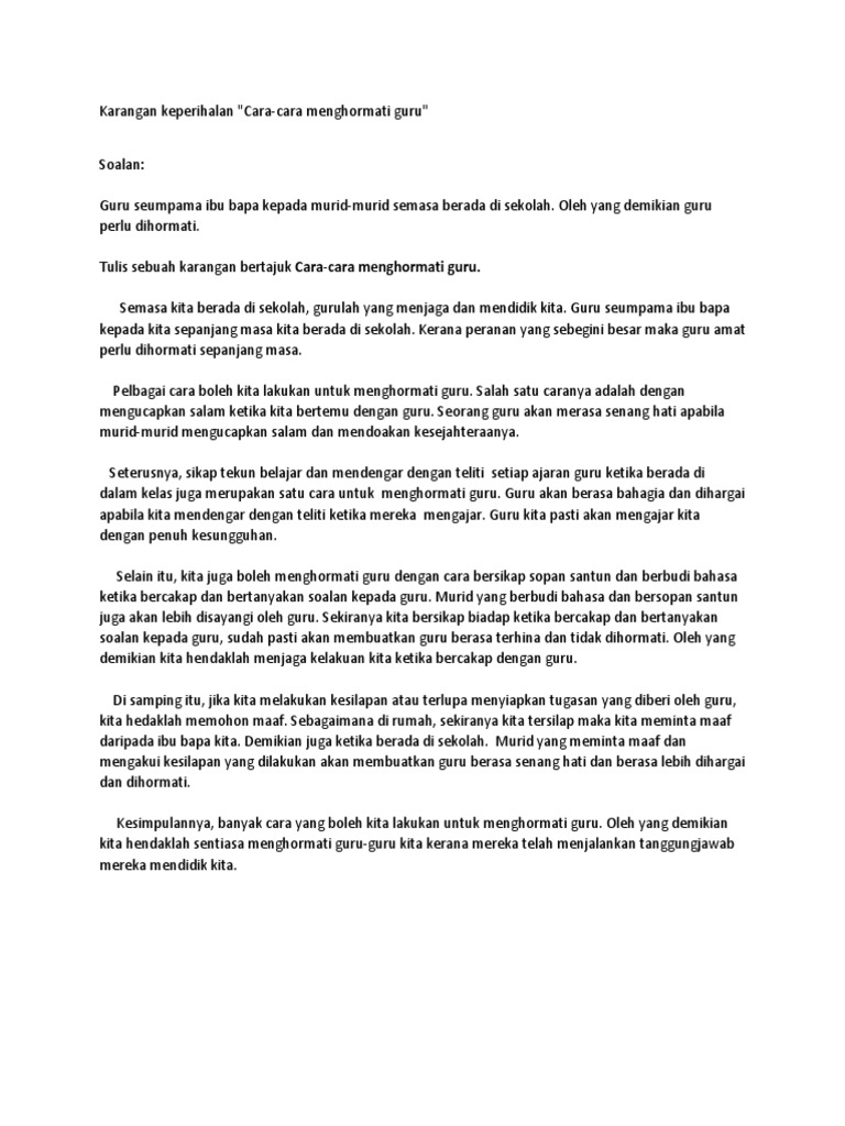 Contoh Karangan Cara Cara Menghormati Guru Jawkosa