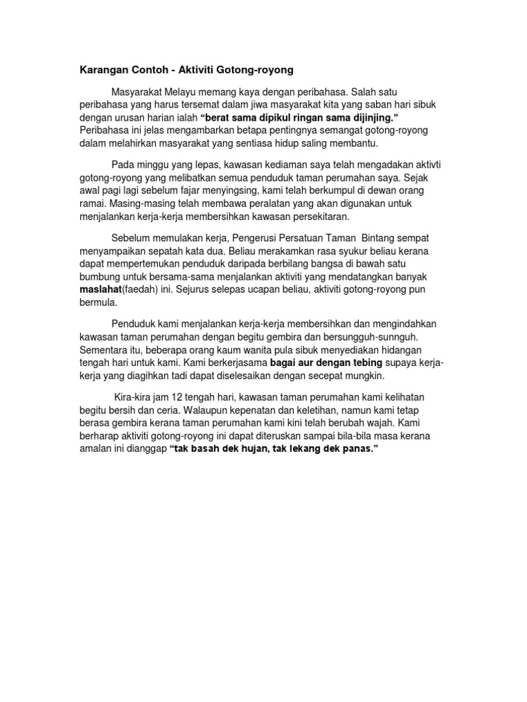 Karangan Contoh Gotong Royong