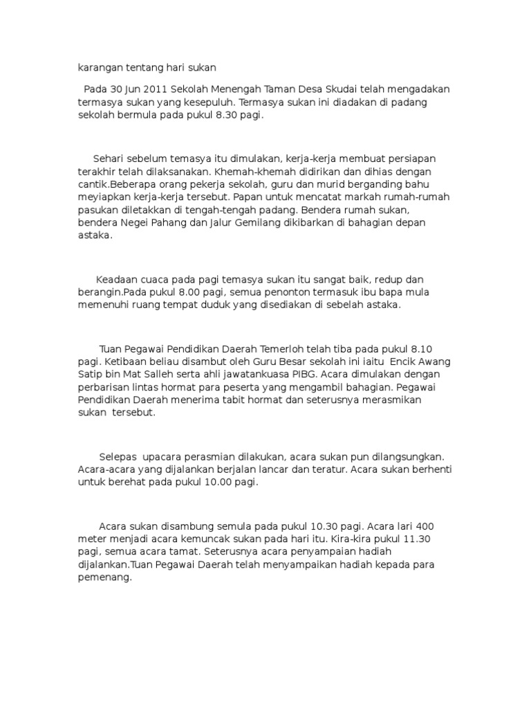 Hari Sukan Sekolah Contoh Karangan Perokok T