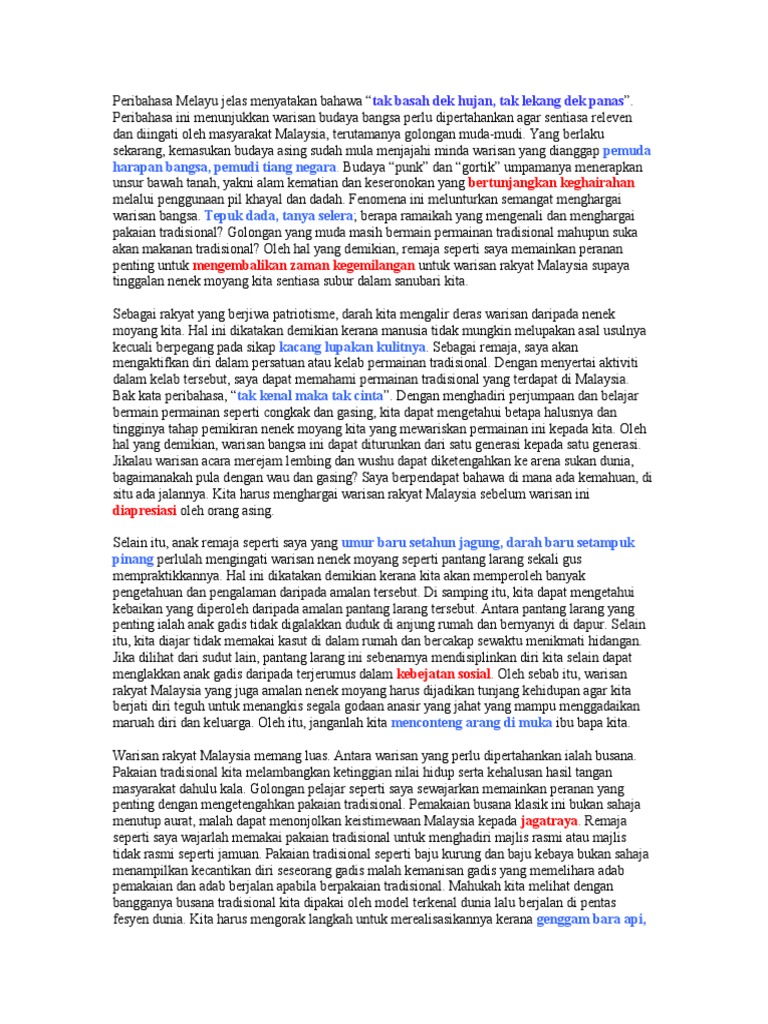 46127266 Karangan Faedah Mengekalkan Warisan Budaya Malaysia