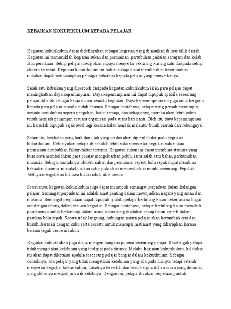 Contoh Karangan Faedah Menyertai Aktiviti Kokurikulum Jawkosa