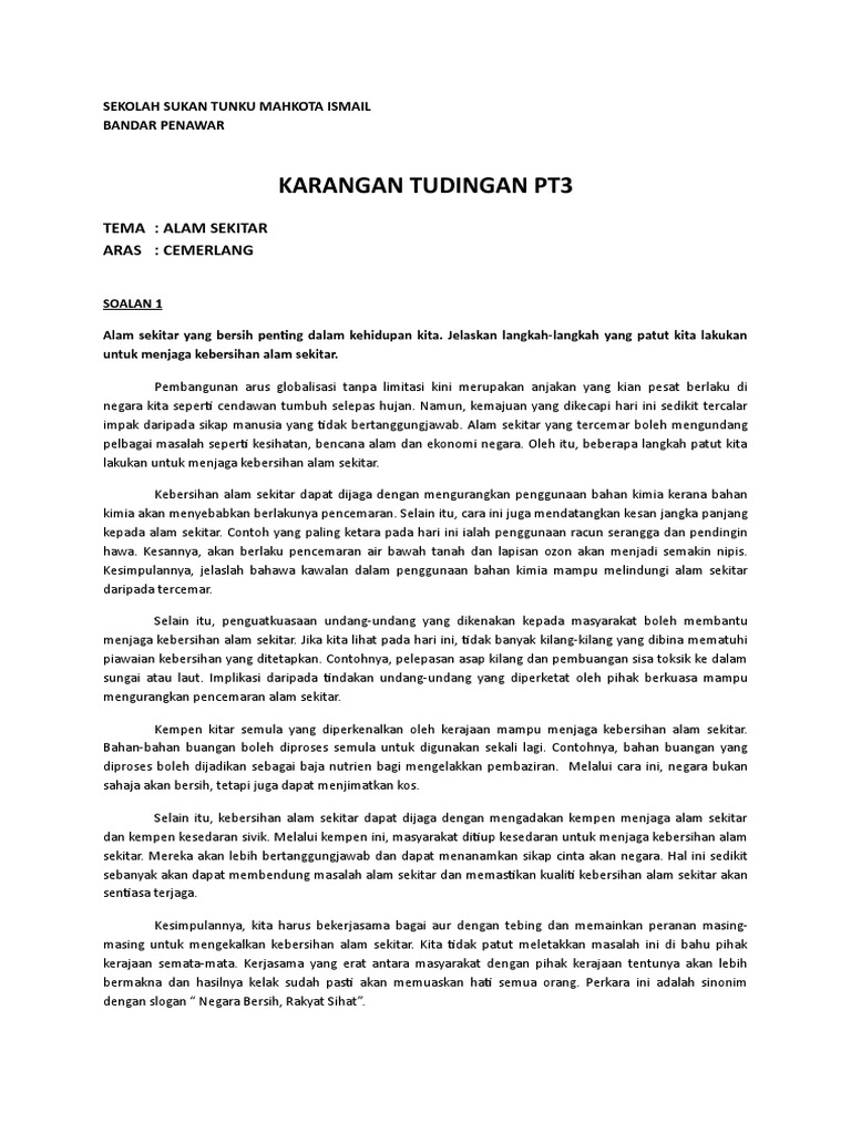Soalan Karangan Pencemaran Alam Sekitar Terengganu T