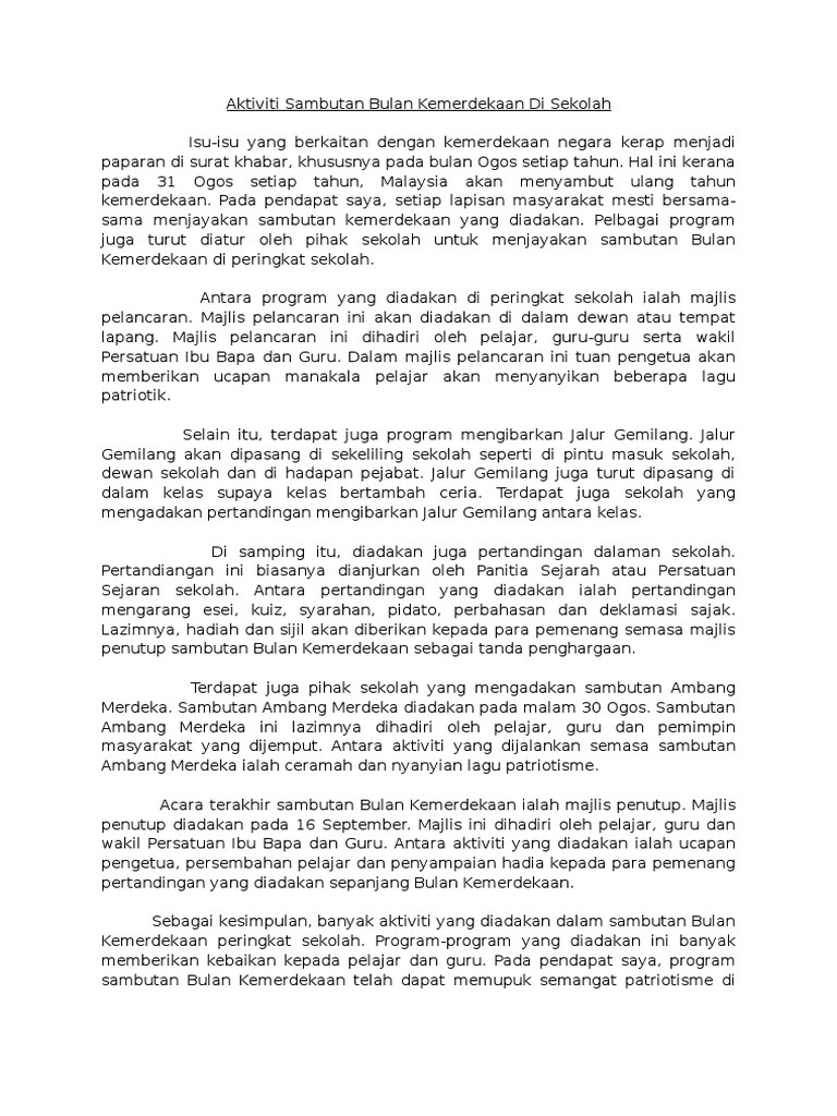 Pengalaman Karangan Sambutan Hari Kemerdekaan Di Sekolah