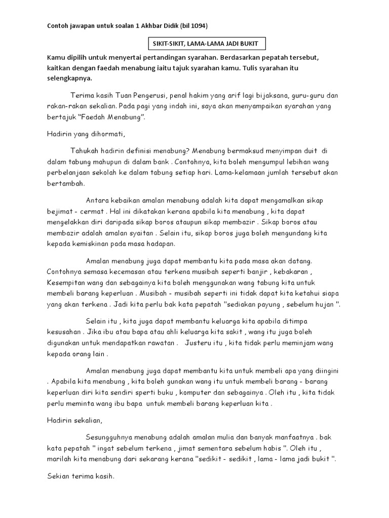Contoh Karangan Syarahan Menabung