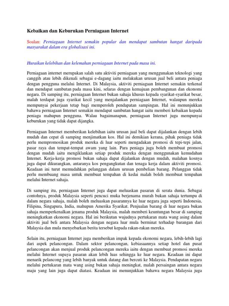 Kebaikan Perniagaan Atas Talian Karangan Spm