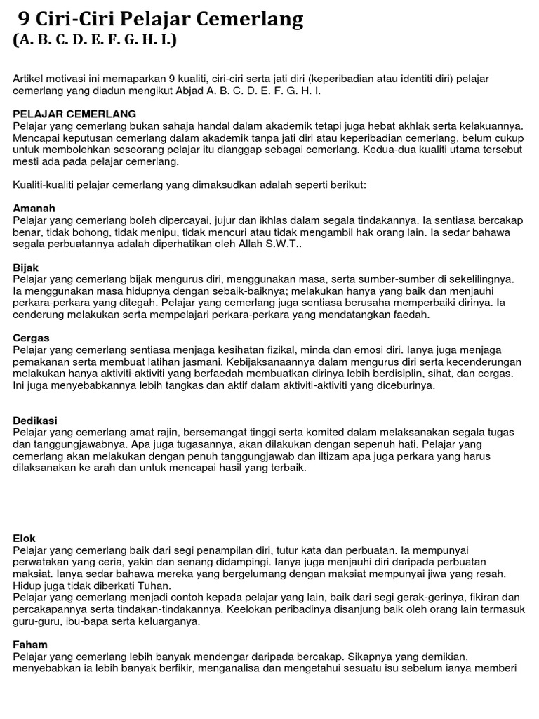 Spm Bm Karangan Ciri Pelajar Cemerlang Doc Document