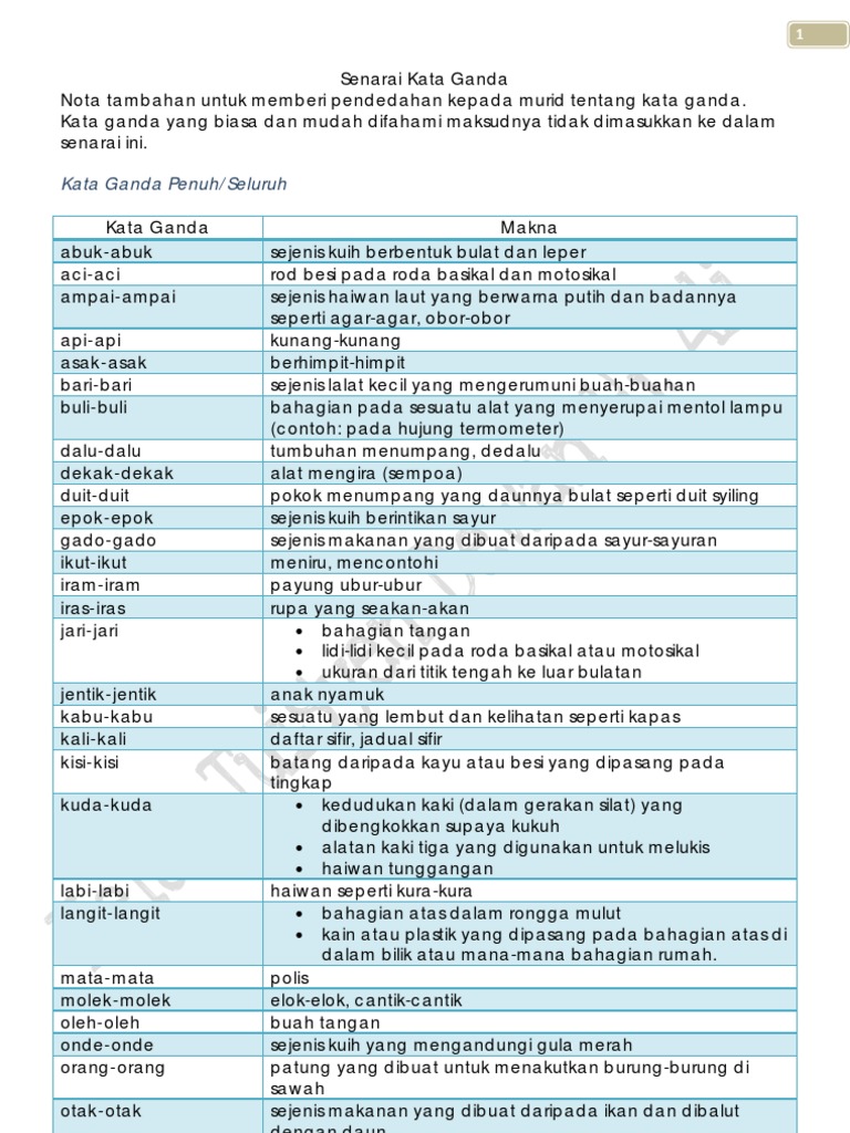 Contoh Kata Ganda Materi Pelajaran 1