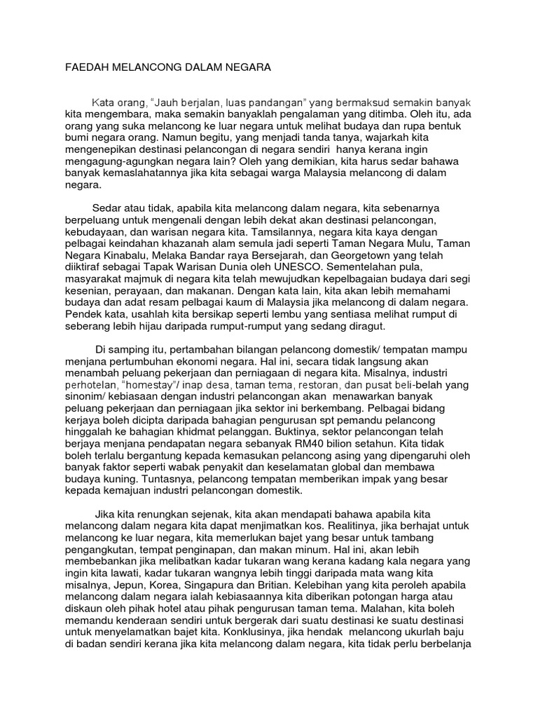 Contoh Ulasan Kebaikan Melancong Dalam Negara